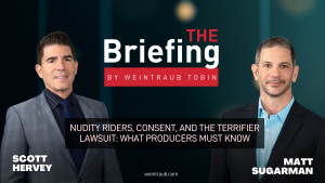 The Terrifier franchise is one of the most unlikely independent horror success stories of the last 25 years. But a new lawsuit challenges how the first film was made and raises serious questions about performer consent and on-set protections. In this episode of The Briefing, Weintraub Tobin partners Scott Hervey and Matt Sugarman break down actress Catherine Corcoran’s lawsuit against the film’s producers and what it reveals about SAG-AFTRA requirements for nudity and simulated sex scenes.